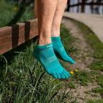 Our lowest-bulk sock is built for all types of runs on all kinds of surfaces. Our unique five-toe performance design eliminates the friction that can cause blisters, and keeps your toes free for better feel and natural fit on uneven terrain. Soft, durable seamless construction creates a supportive, secure fit, a mesh top and COOLMAX® fibres help keep feet dry and cool, and a band under the arch provides support and stability. The no-show length rests below the ankle and features a heel tab to protect against chafing and keep your socks from sliding into your shoes.